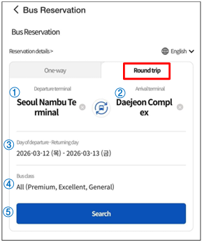 ① Select ‘Round trip’