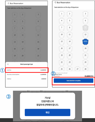 ② Select the passenger type, then complete your seat selection.