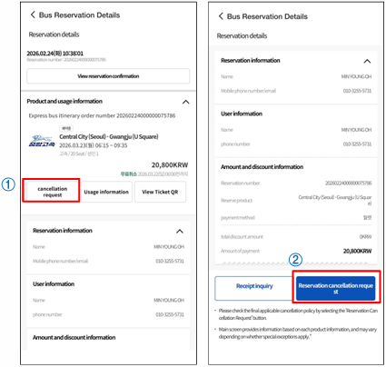 ① and ② Both buttons 1 and 2 will take you to the cancellation page.