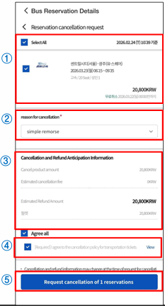 ⑤ After selecting all items from 1 to 4, press the request cancellation button.